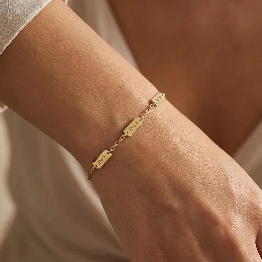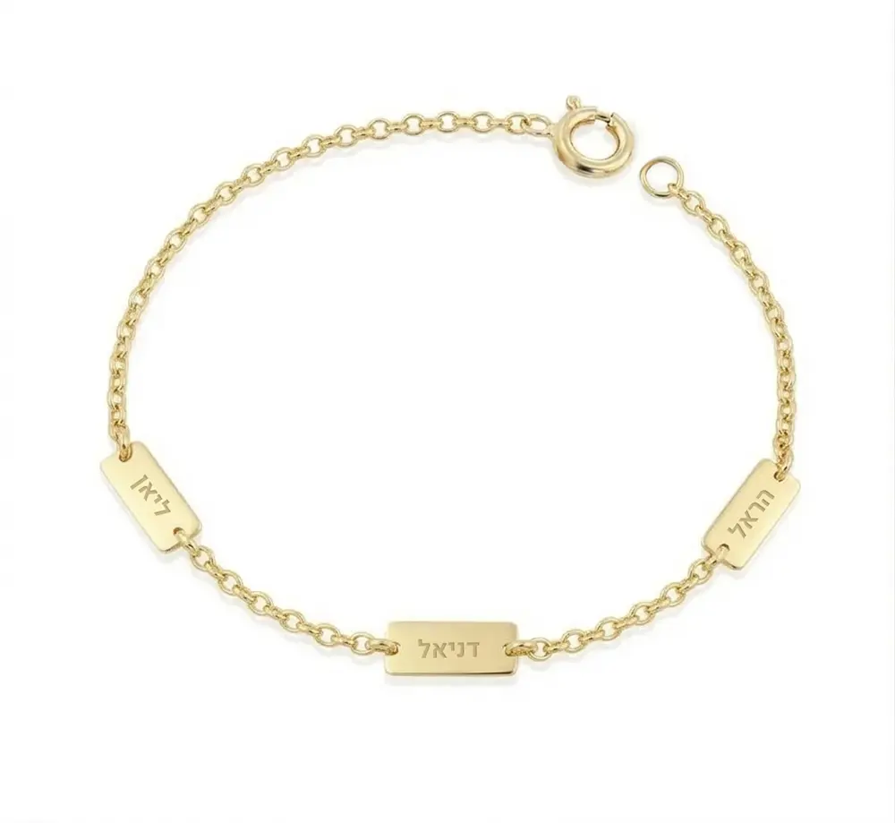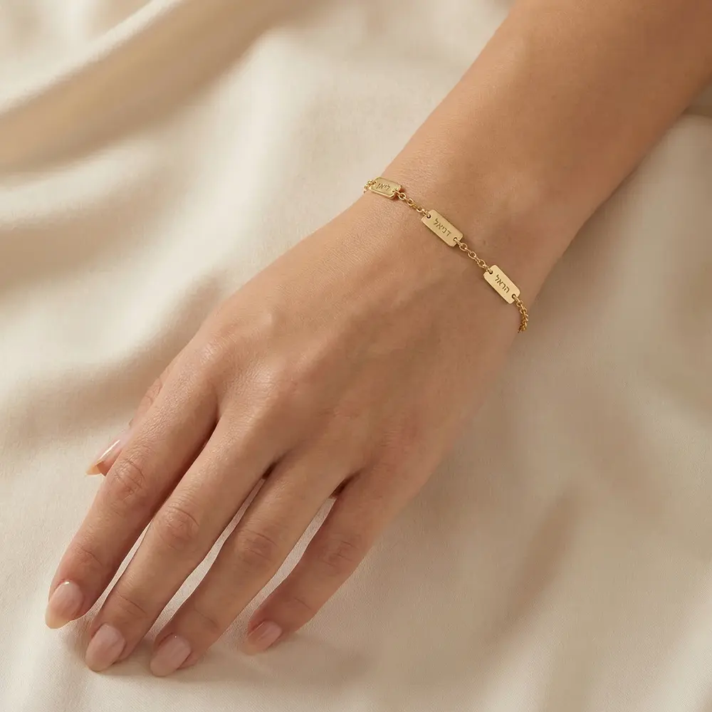 צמיד מלבנים עם שמות הילדים זהב 14K