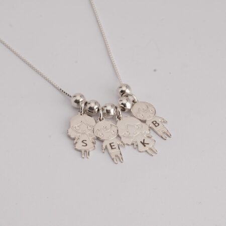 שרשרת ילדים עם חריטה של אות היא תכשיט אישי, מרגש וייחודי, המותאם במיוחד לאימהות, סבתות וכל מי שרוצה לשאת את אהוביה קרוב ללב. השרשרת מעוצבת בקו אלגנטי ומודרני, ומגיעה עם תליוני דמויות ילדים חמודים, כל אחד מייצג את אחד מבני המשפחה בצורה עדינה, מלאת אופי ומשמעות.
