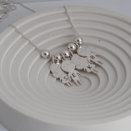 כל תליון מעוצב כדמות ילדה או ילד ומגיע עם חריטה אישית של אות לבחירתכם, המאפשרת ליצור תכשיט מותאם באופן מלא למי שעונד אותו. ניתן לבחור מספר דמויות בהתאם למספר הילדים או הנכדים שתרצו לייצג, כך שנוצר תכשיט אישי ומרגש שמספר סיפור משפחתי שלם.