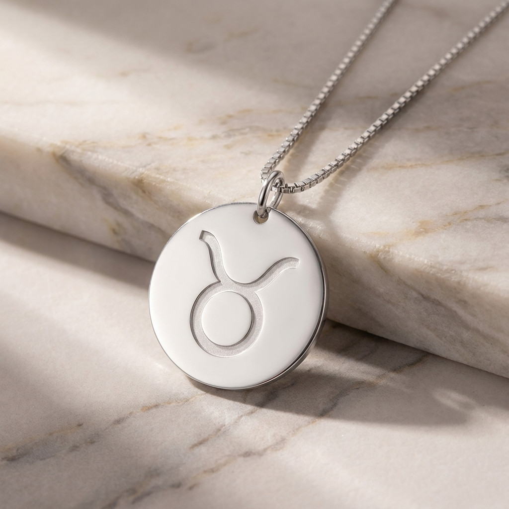 שרשרת תליון עגול מזל שור עשויה מכסף אמיתי 925 עם אפשרות לציפוי זהב 24 קרט. מזל שור מתחיל ב-21 באפריל ומסתיים ב-20 במאי.