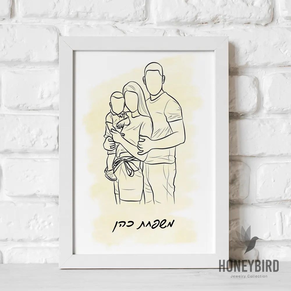 איור מינימליסטי במסגרת. אתם שולחים תמונה ואנו נצייר אותה בסגנון קווי שחור לבן, נדפיס, נמסגר ונשלח אליכם. מתנה מיוחדת ומרגשת שמתאימה לכל ארוע.