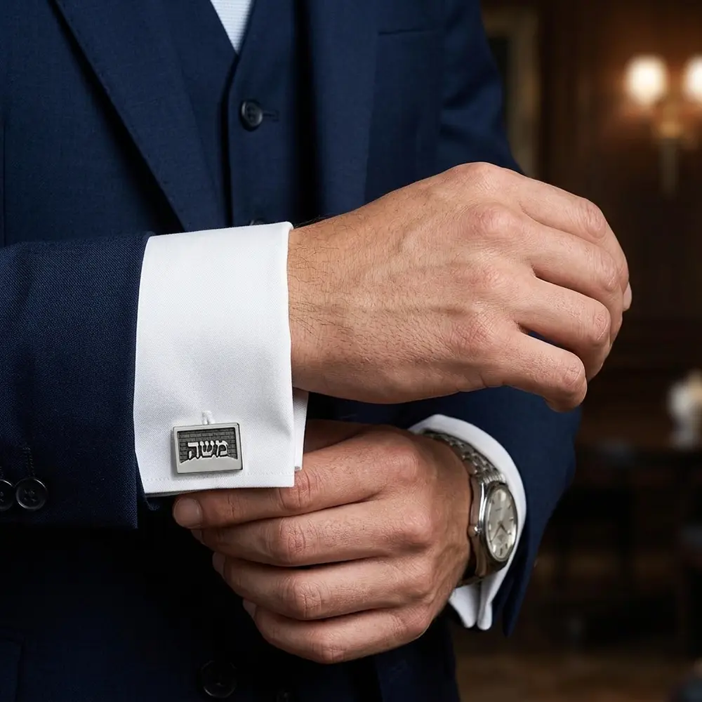חפתים יוקרתיים לגבר בעיצוב ייחודי עם הכיתוב “מצדה”, המשלבים בין מורשת ישראלית עוצמתית לבין סגנון אלגנטי ומודרני. החפתים עשויים בגימור כסף איכותי ומעוצבים בקפידה, עם רקע המדמה חומת אבן, מחווה לאחד הסמלים ההיסטוריים החשובים בישראל. החפתים מעניקים מראה מתוחכם ומרשים לכל חולצה מכופתרת או חליפה, ומתאימים במיוחד לאירועים חגיגיים, פגישות עסקיות או הופעה יומיומית מוקפדת.