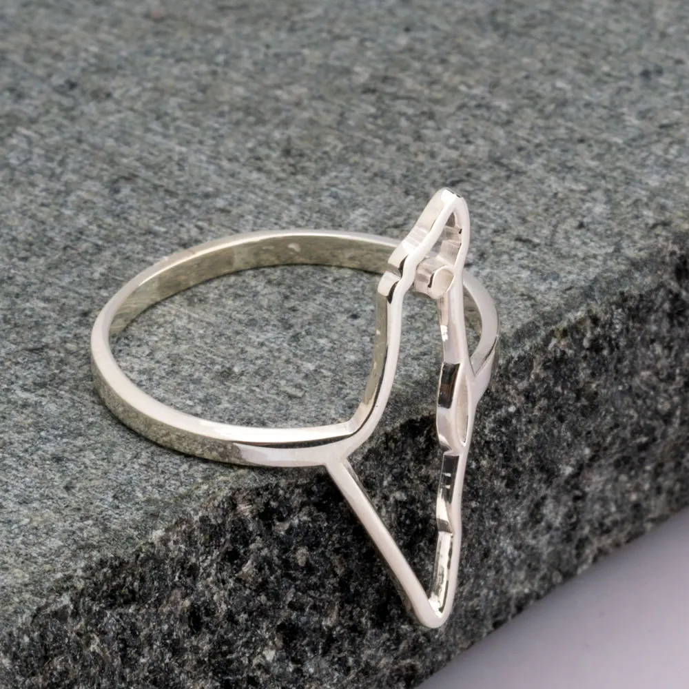 טבעת ארץ ישראל עשוי מכסף אמיתי 925. הטבעת חלולה ובצורת מפת ארץ ישראל לאוהבי הארץ האחת והיחידה שלנו. ניתן גם בציפוי זהב 24 קרט.