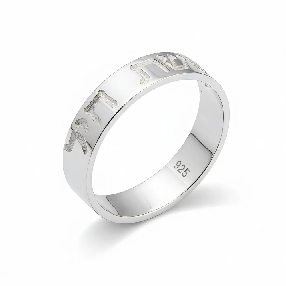הטבעת עשויה כסף אמיתי 925, וכוללת חריטה עברית נקייה ומדויקת של הביטוי אשת חיל, סמל לאישה חזקה, ערכית ומלאת חן.