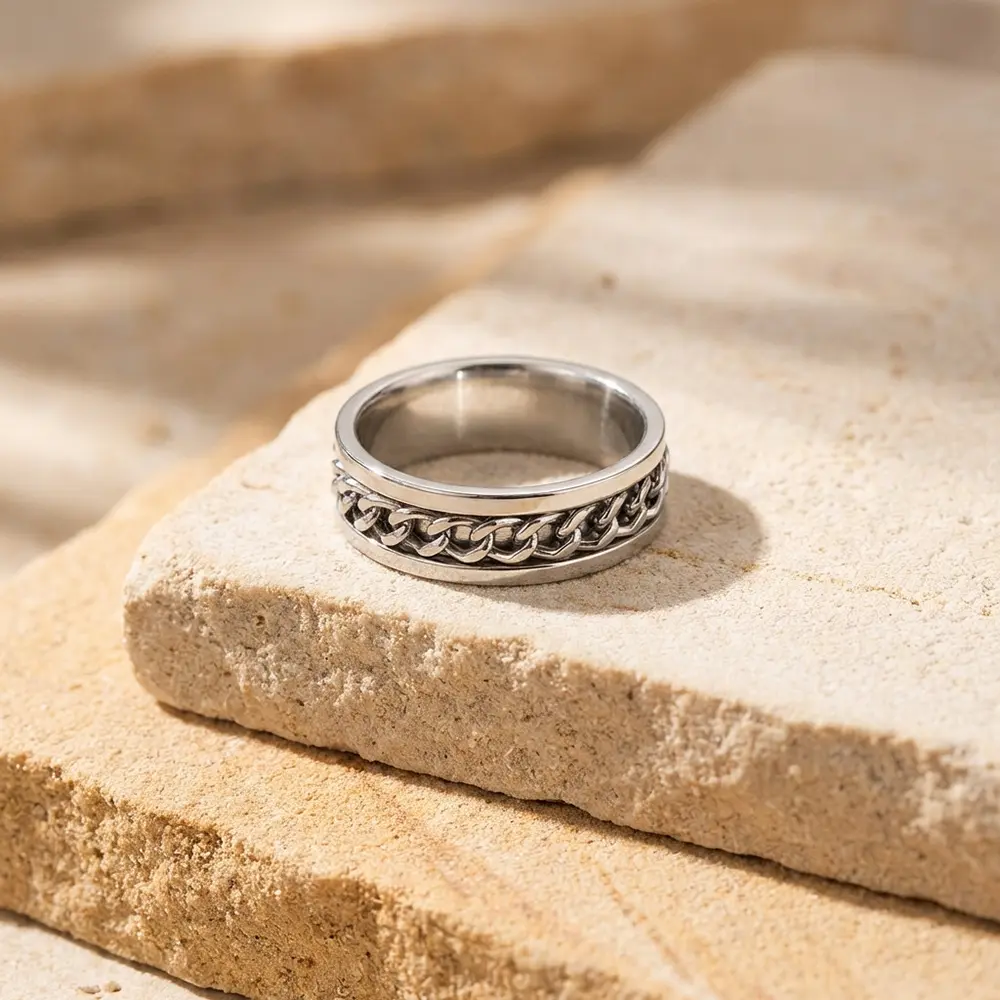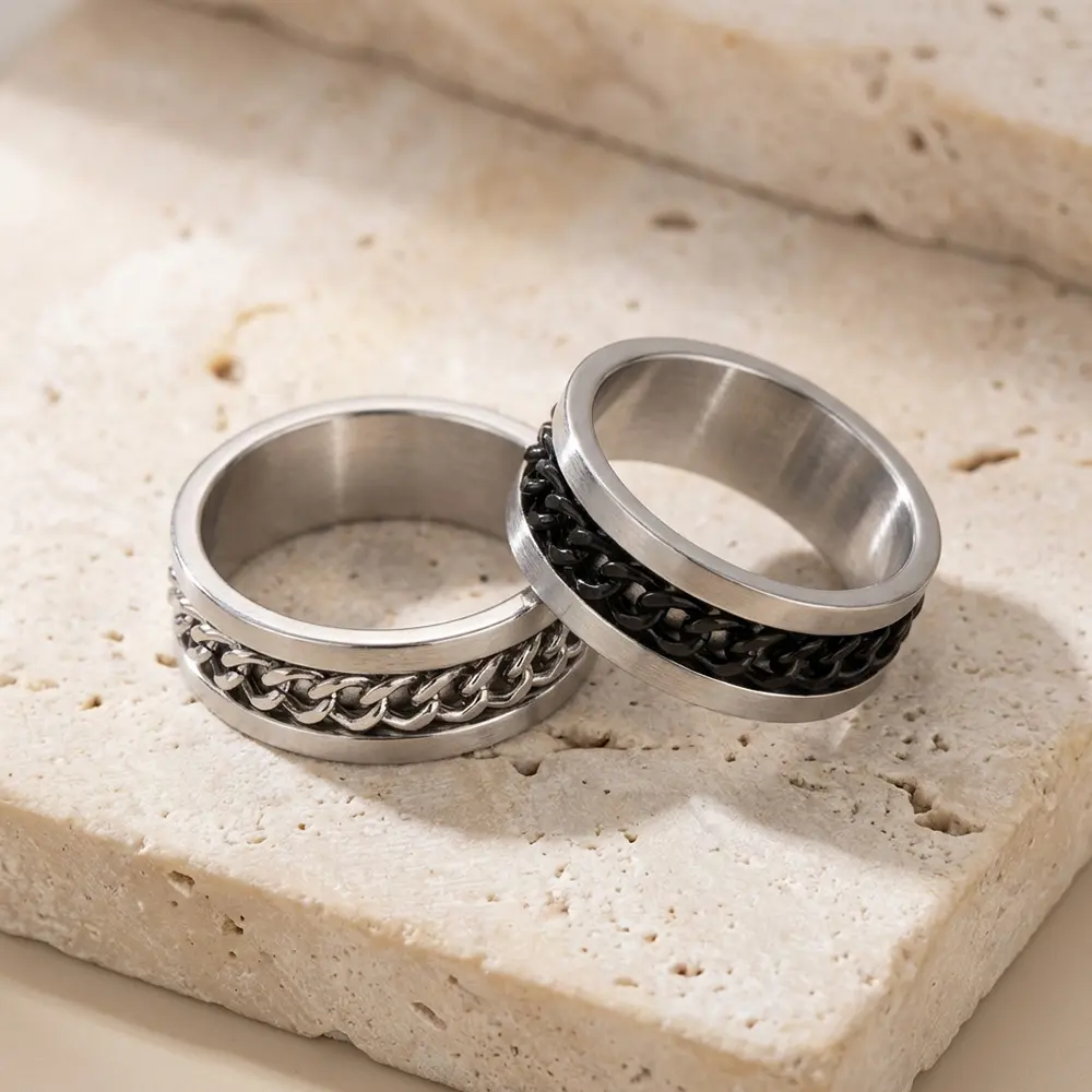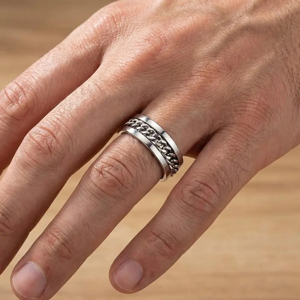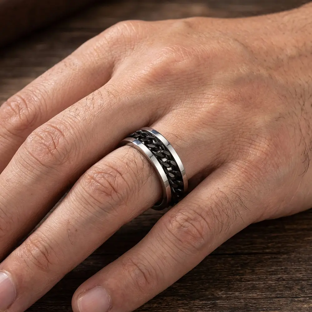 טבעת גורמט מסתובבת בשני צבעים לבחירה: גורמט בצבע שחור או גורמט בצבע כסוף. טבעת מסתובבת ידועה בתכונות שמרגיעות ומפחיתות לחץ. הטבעת עשוייה stainless steel עמיד למים ולא משחיר.