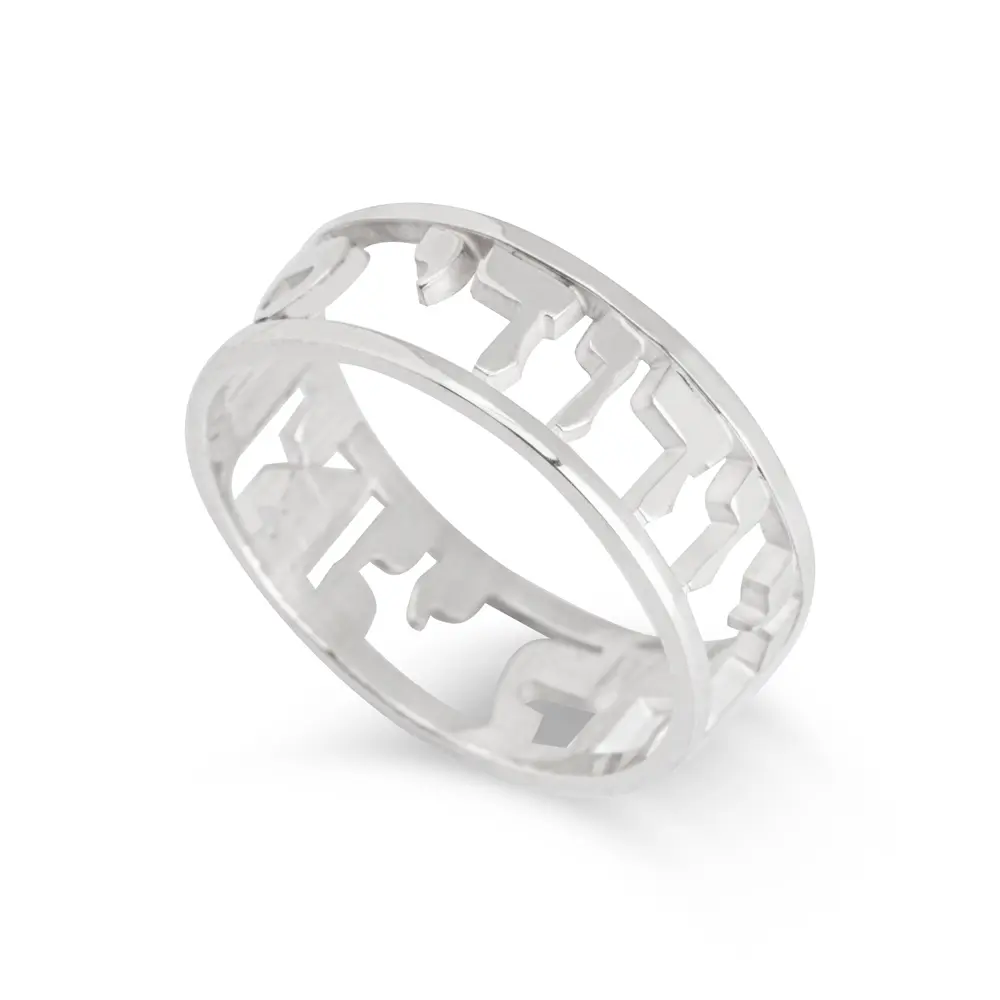 טבעת כסף אמיתי בעיצוב ייחודי עם חריטה בעברית כתב דפוס – יצירה אלגנטית המשלבת מסורת עם סטייל עכשווי. כל טבעת מיוצרת בעבודת יד בקפידה ומתאימה אישית עם המשפט או המילה שתבחרי, כדי לשאת תמיד מסר אישי ומשמעותי קרוב ללב.