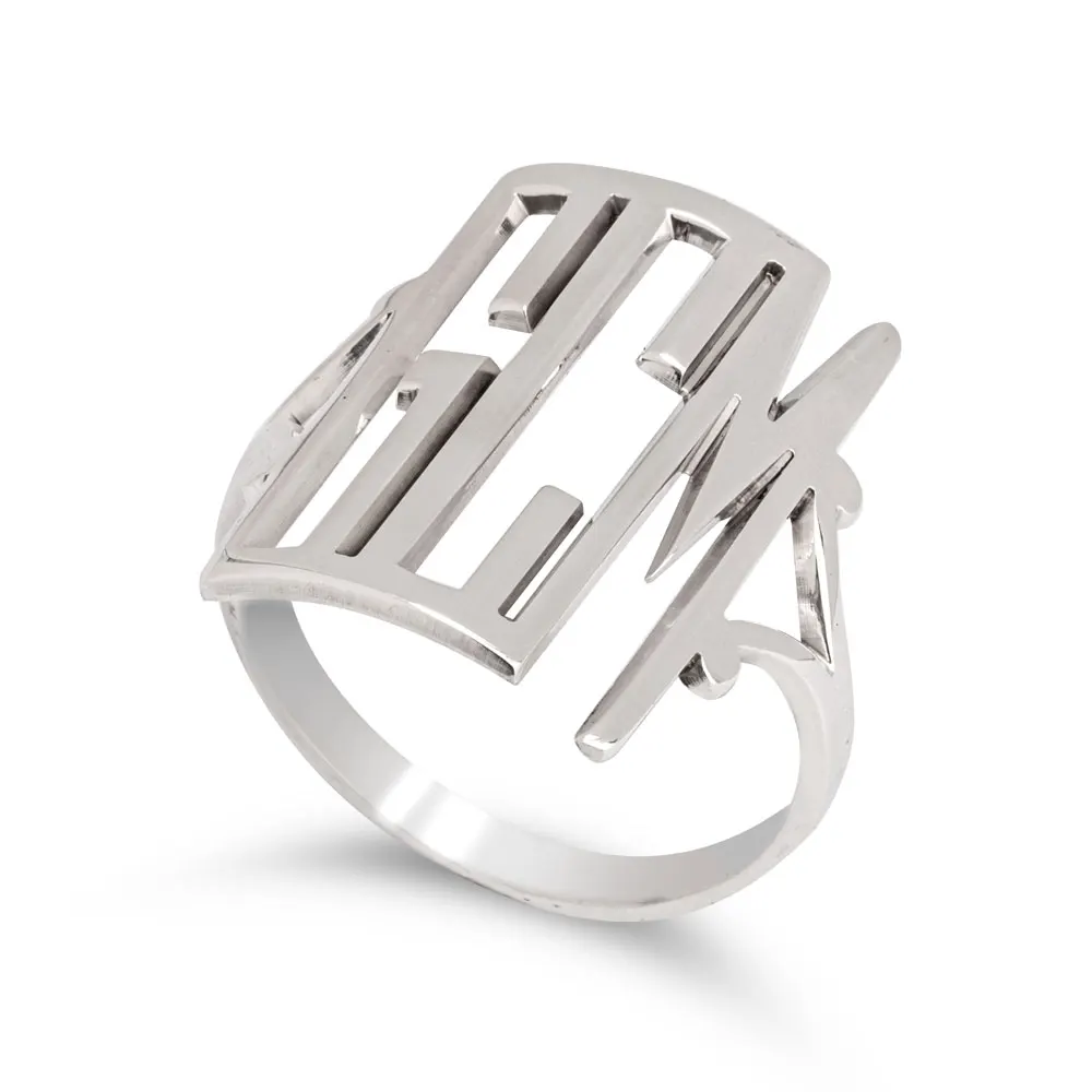 טבעת מונגרם המורכבת מ-3 אותיות עשוייה כסף אמיתי 925 עם אפשרות לציפוי זהב 24 קרט.