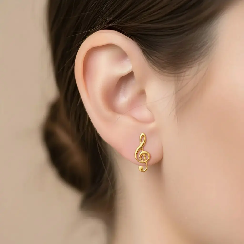 עיצוב מפתח סול: העגילים מעוצבים בצורת מפתח סול, סמל אהבה וחיבור למוזיקה, המוסיפים נגיעה ייחודית לכל הופעה.