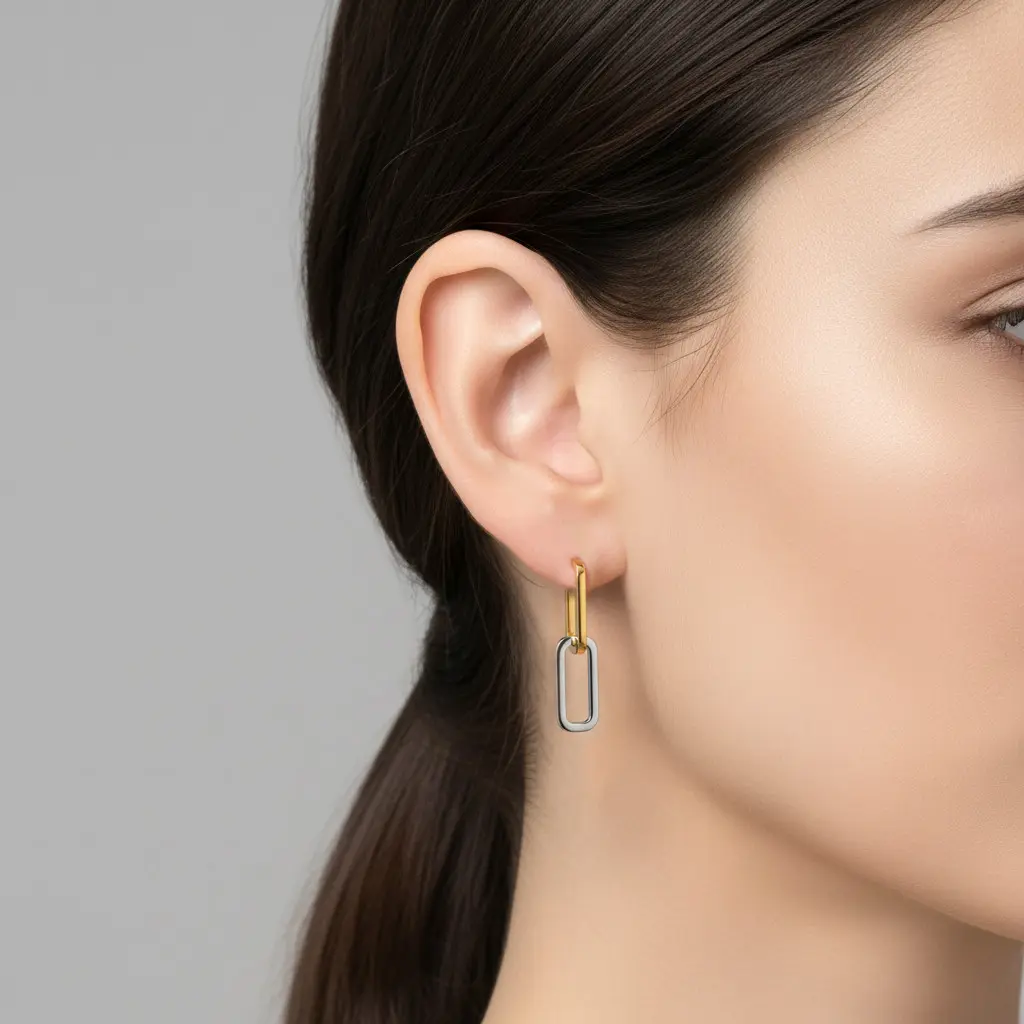 זוג עגילי פפר קליפ בשתי צבעים: עגיל עליון בצבע זהב ועגיל תחתון בצבע כסף. זוג עגילים עם נוכחות שיתאימו לכל לוק שתבחרי.
