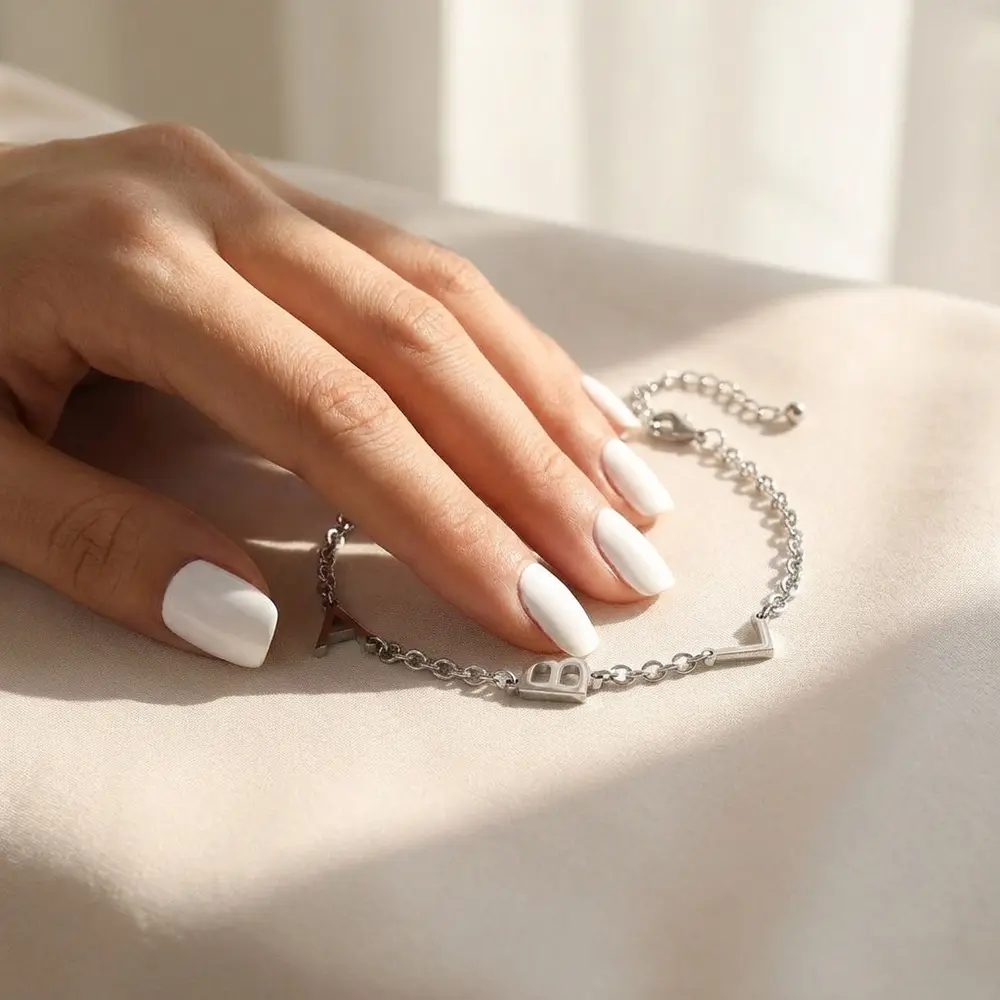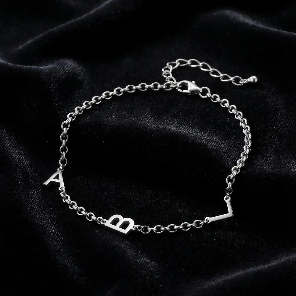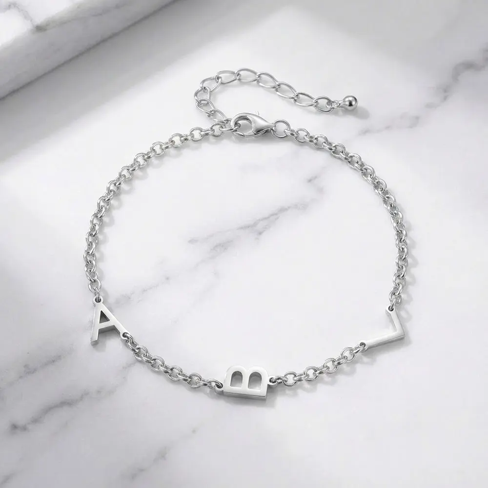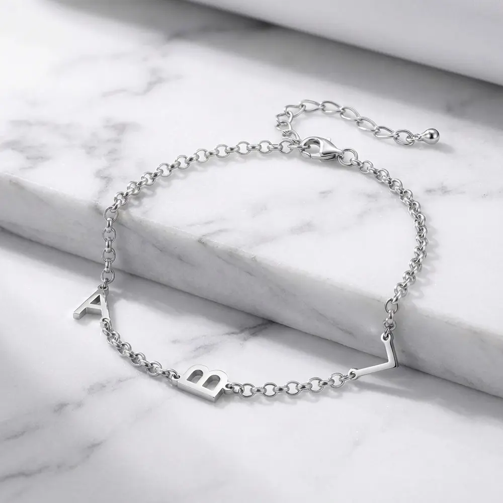 צמיד אותיות אישי בעיצוב נקי ואלגנטי, עשוי כסף אמיתי 925.