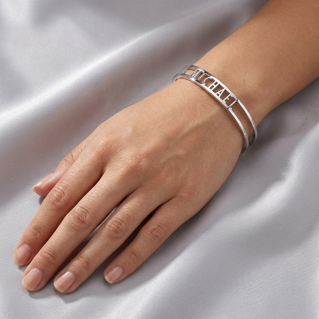 צמיד בנגל עם שם עשוי כסף אמיתי 925 מתאים לנשים וגם לגברים.