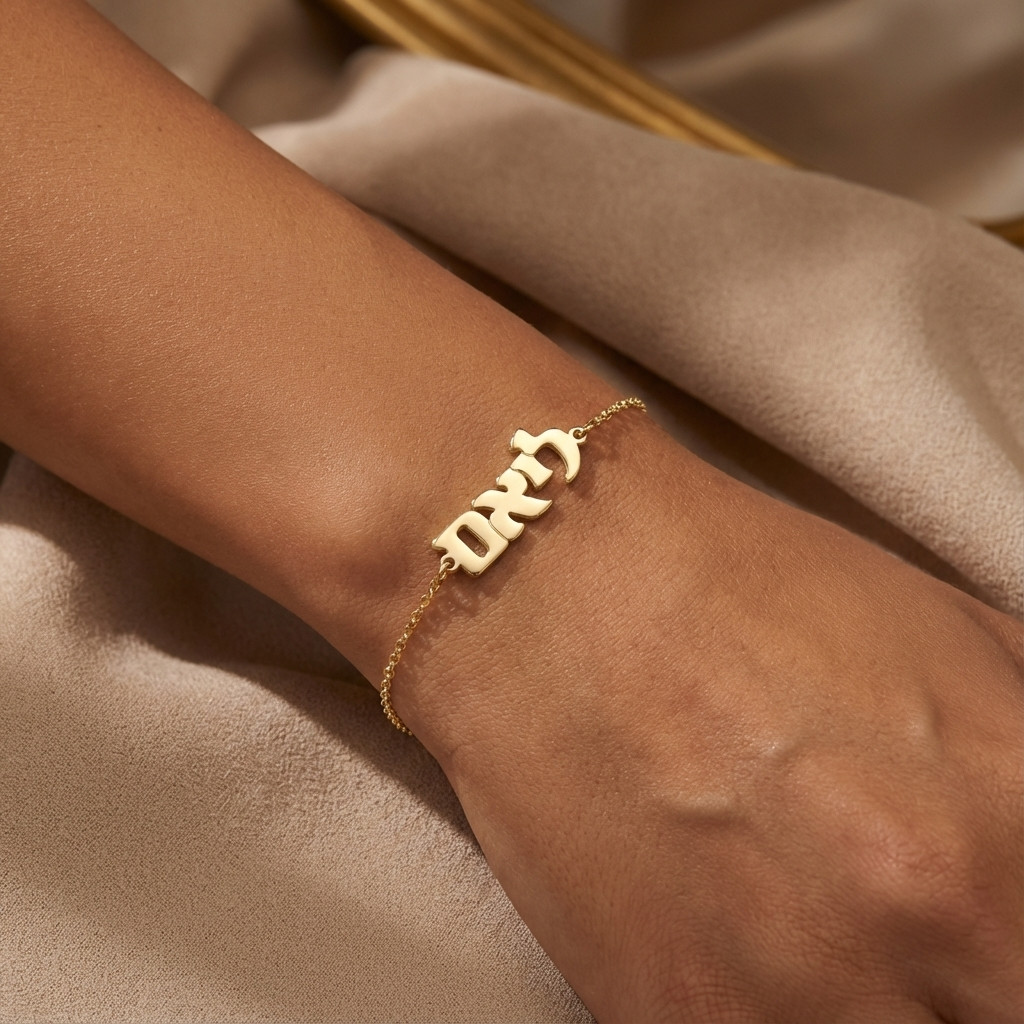 צמיד עם שם בעברית עשוי מכסף אמיתי 925, צמיד מותאם אישית המורכב מאותיות דפוס בעברית. לבחירתכם – ניתן לרכישה גם בציפוי זהב 24 קרט.