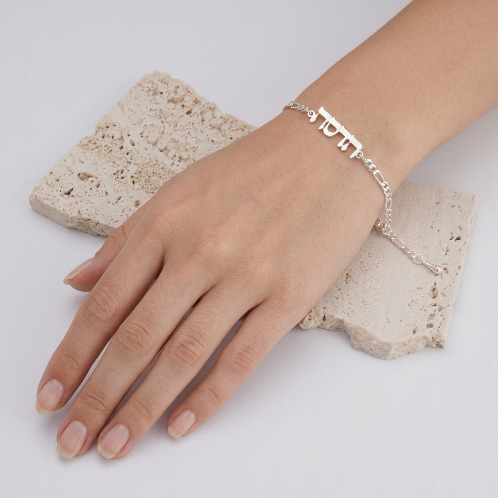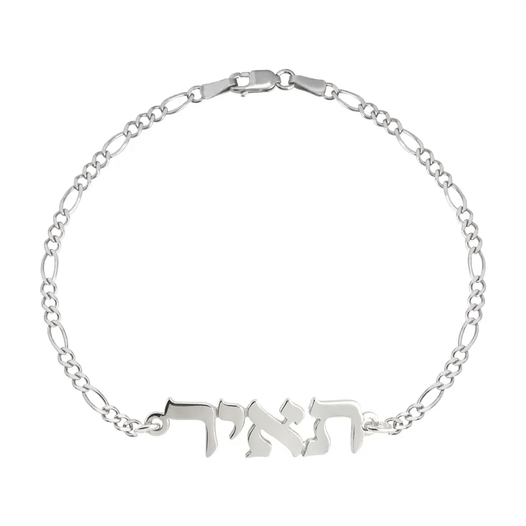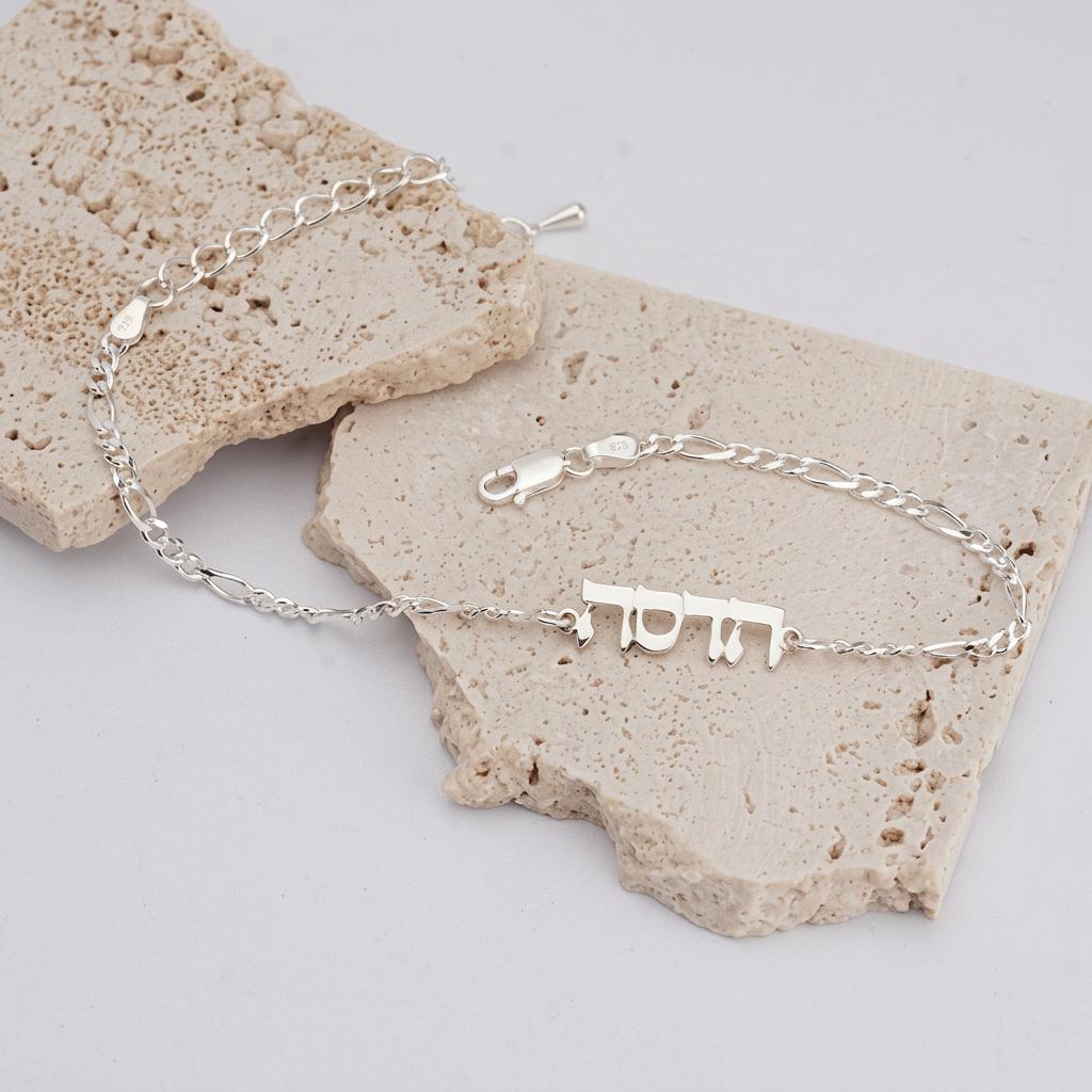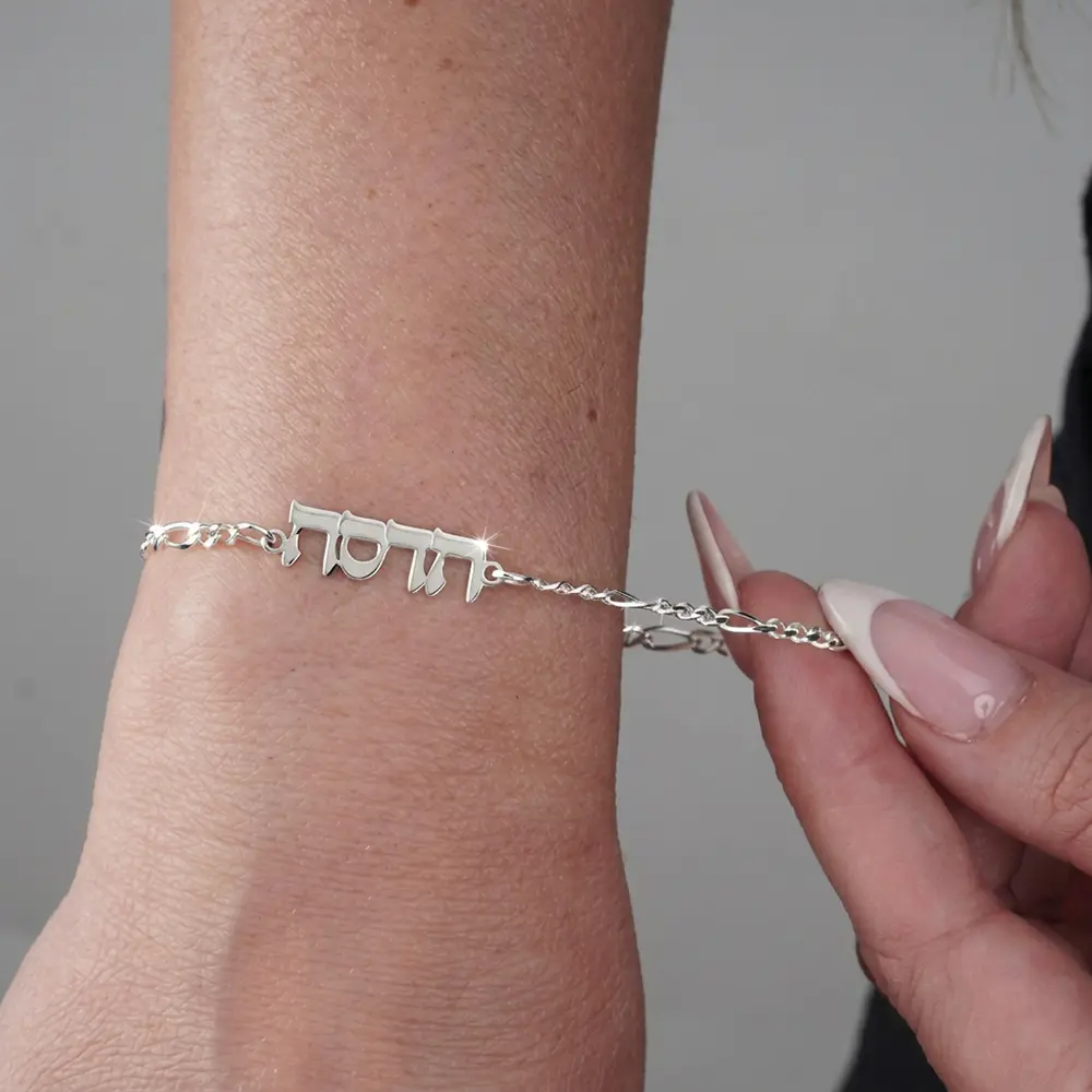 צמיד שם עדין עם שרשרת פיגרו עשוי כסף 925 איכותי בעיצוב אלגנטי ומיוחד. הצמיד כולל שם בהתאמה אישית המשתלב בצורה מושלמת עם השרשרת ויוצר תכשיט אישי ומלא משמעות.