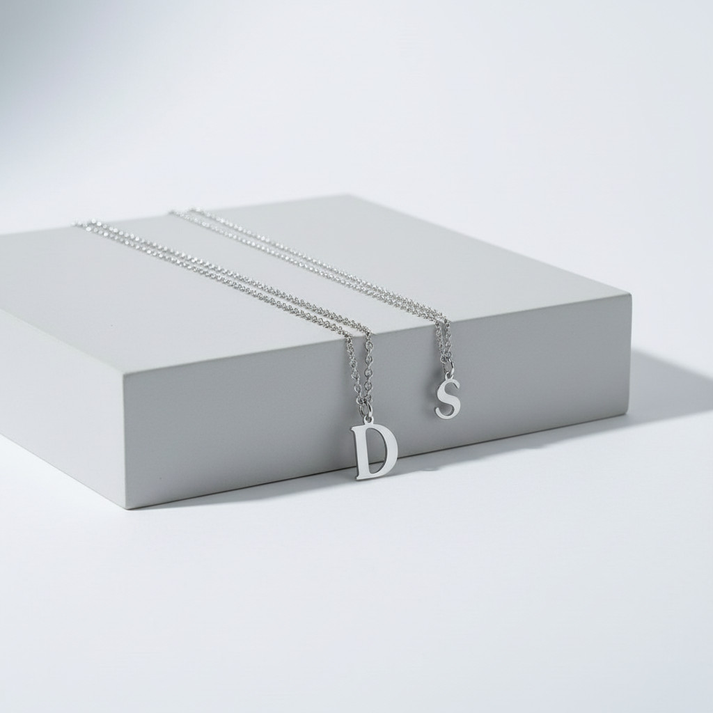 סט שתי שרשראות אותיות בשבילה ובשבילו עשוי כסף אמיתי 925. שרשרת המעוצבת מאות לבחירה, שרשרת אחת לגבר והשנייה לאישה, ניתן גם בציפוי זהב 14 קרט.