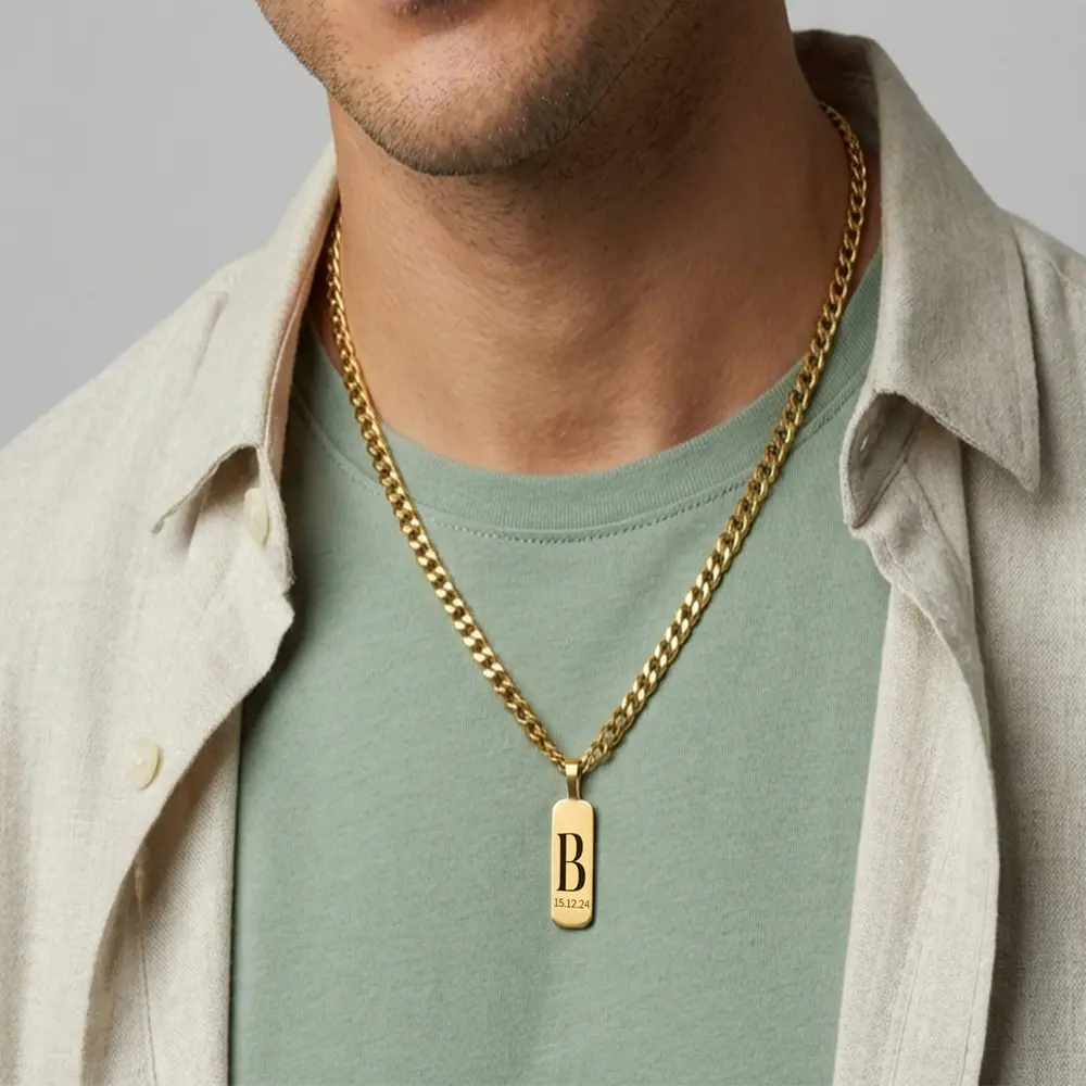 שרשרת בר לגבר עם חריטה בהתאמה אישית