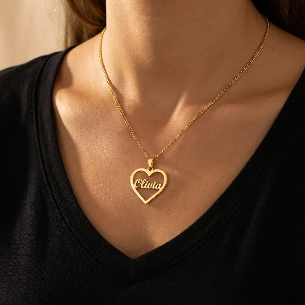 שרשרת תליון לב עם שם בהתאמה אישית.