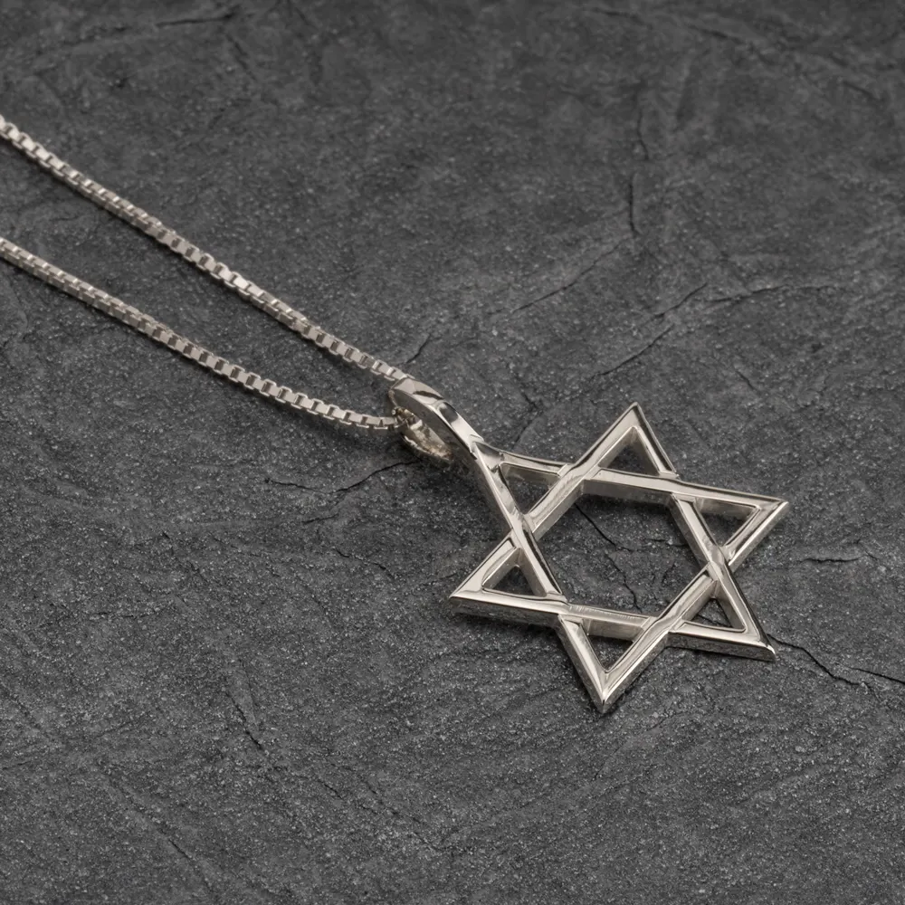 מגן הדוד בעיצוב המוכר והאהוב, עם חוליה מחוברת לשרשרת בחלקו העליון.