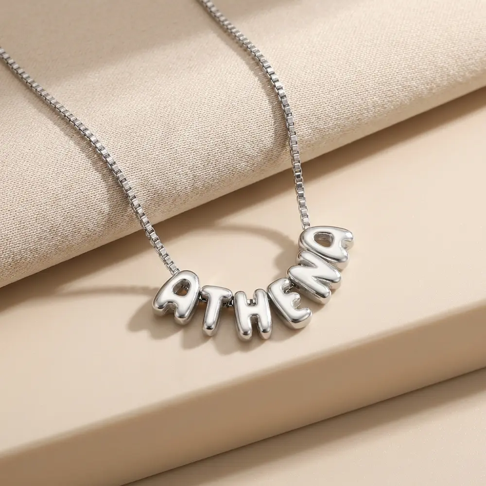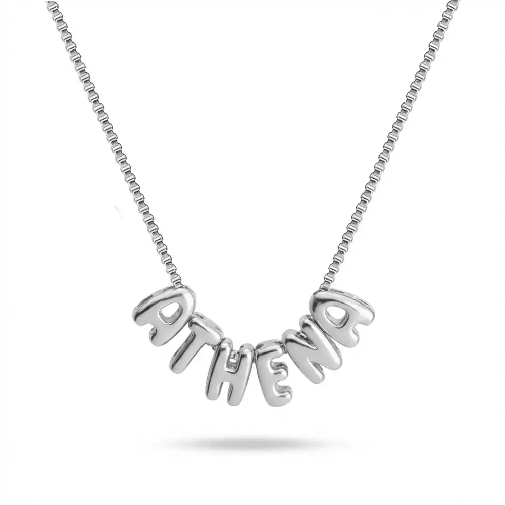 - שרשרת שם אותיות בלון בעיצוב אישי, אותיות תלת ממדיות בגימור חלק ומבריק
