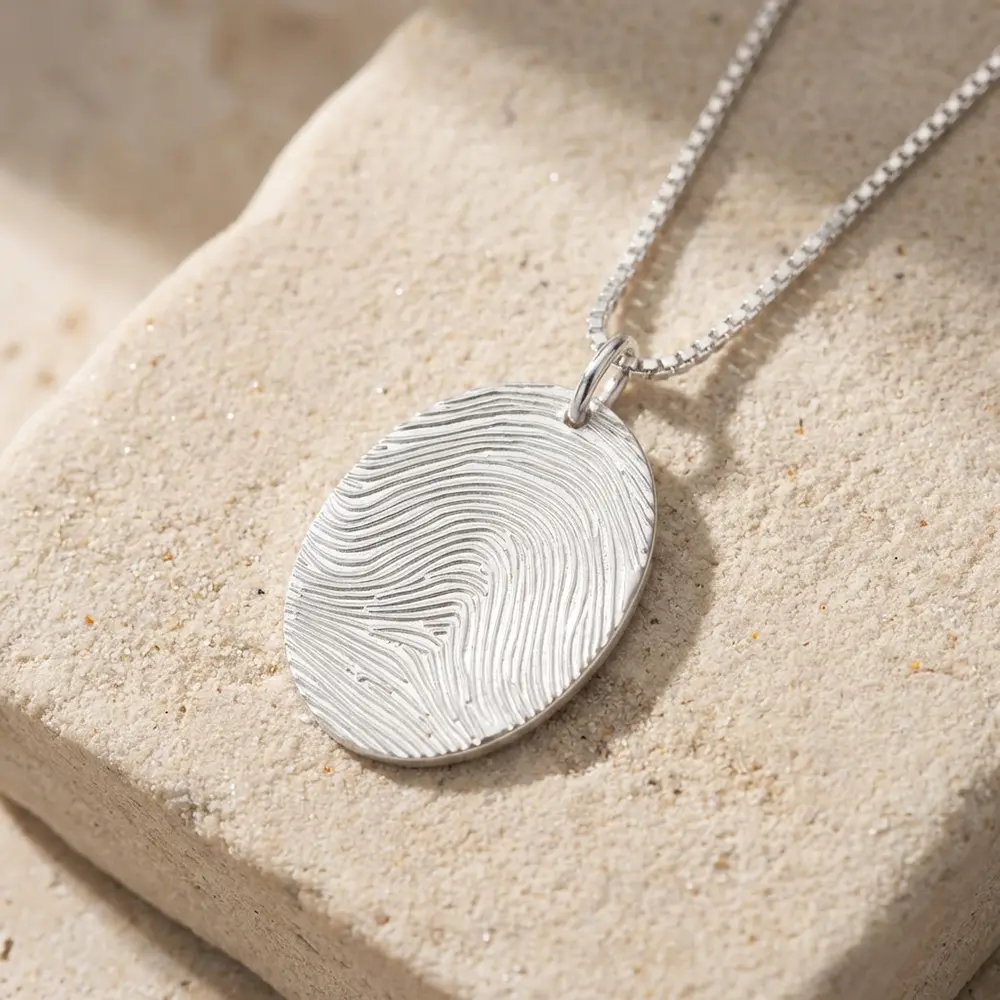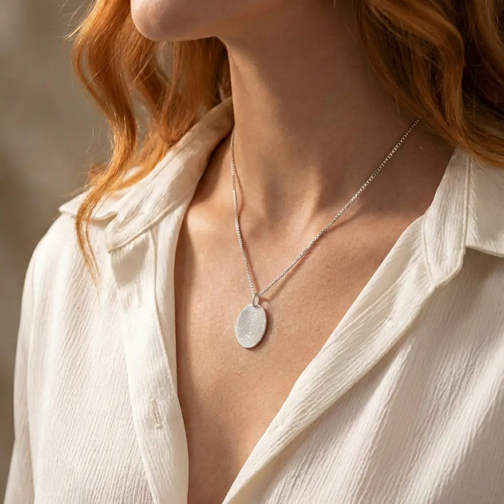 אם אתם מחפשים שרשרת עם טביעת אצבע זאת השרשרת הקלאסית שלנו, שרשרת תליון אובלי עם טביעת אצבע מכסף אמיתי 925.